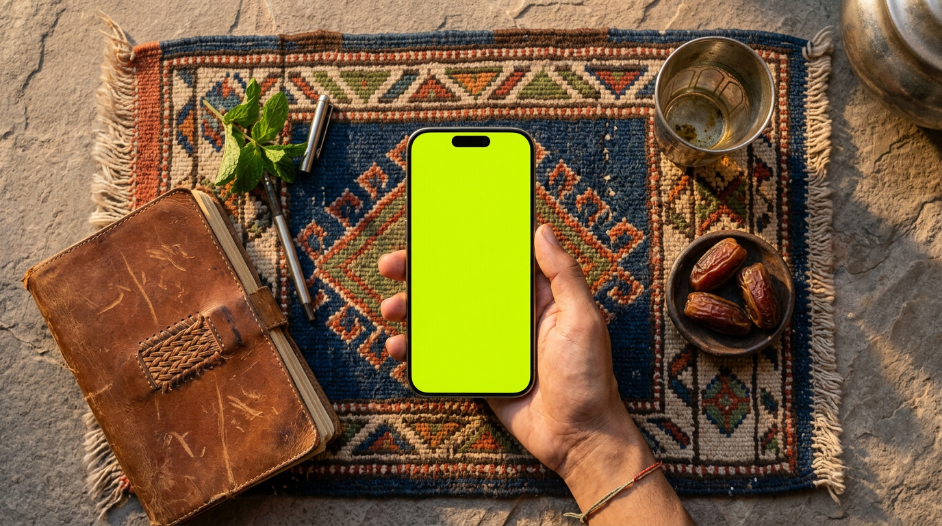 Premium iPhone 17 Pro mockup — Marrakech Souk Flat-Lay. Part of the "Digital Nomad's Escape" collection.
